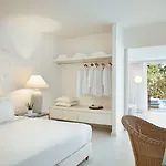 Unele dintre camerele unice de la hotelul Grecotel Luxme White au vedere la munte și includ o terasă și o zonă de dressing. Acestea sunt dotate cu canapele, dulapuri.